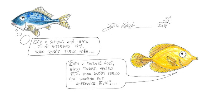 Odgovor na vprašanje kako ribe pijejo, pa je odvisen od tega v kakšni vodi živijo. Sladkovodne ribe tekočino dobijo preko kože, morske pa jo pijejo podobno, kot to počnejo kopenske živali.