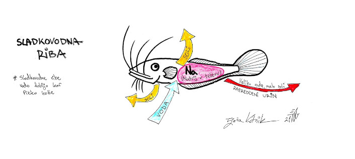 Ker sladkovodne ribe dobijo minerale in tekočino preko kože, je zelo pomembno, da slanost njihovih teles ni višja od slanosti vode, ki jih obdaja. Mehanizem hidracije deluje tako, da voda dobesedno teče skozi ribo, sol pa ostaja v telesu. V primeru, da je slanost višja, bo voda iz ribjega telesa odhajala enako hitro, minerali pa se bodo kopičili v telesu in v ledvicah. Na celični ravni to povzroči dehidracijo in odmiranje celic, ribam odpovedo ledvice in na koncu poginejo zaradi dehidracije. Povprečna sladkovodna riba v morski vodi preživi 10 minut. Počasnejša smrt pa jo čaka v sladki vodi, ki ima neprimerno mineralno sestavo, običajno se v teh primerih pred odpovedjo ledvic pojavijo ledvični kamni, ki se pogosto vnamejo ter povzročijo trebušno vodenico.