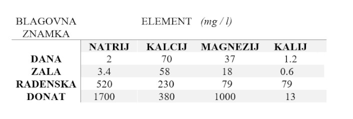 To so ioni in kationi različnih kovin (mineralov) in plinov, predvsem natrija, klora, kalija, kalcija, magnezija, žvepla in fosforja. Nekatere soli v vodi delujejo zelo bazično in grenko, na primer sol magnezijevega klorida. Druge soli pa delujejo kislo, predvsem tiste, ki vsebujejo železo in žveplo. Ker različne vode vsebujejo zelo različne koncentracije mineralov, ima vsak potok, reka, morje mlaka in jezero specifične pH vrednosti, karbonatno trdoto in skupno trdoto vode. Mineralna sestava je odvisna od kamnin, preko katerih teče voda. V Sloveniji imamo zelo raznoliko sestavo kamnin, zato veljamo za območje z zelo raznolikimi tipi vod. Pogosto se zgodi, da je voda v sosednji vasi kemijsko zelo drugačna od naše. Ta fenomen opazimo tudi pri izvirih pitnih vod, ki se polnijo za namene prodaje.