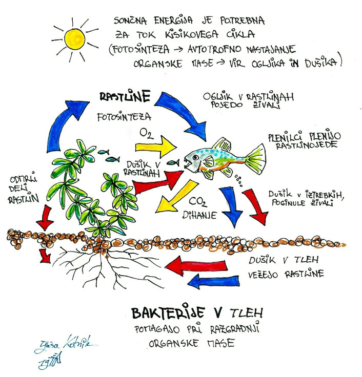V naravi poznamo tri velike krogotoke, to so kisikov, ogljikov ter dušikov cikel. V nadaljevanju vam bom podrobno predstavila kroženje dušika, saj igra bistveno vlogo pri postavitvi ter zaganjanju novo postavljenih akvarijskih sistemov. Še enkrat naj povem, da v naravi cikli med sabo niso ločeni in en brez drugega ne morejo potekati, da kroženje dušika deluje pravilno, morata pravilno delovati tudi ogljikov ter kisikov cikel.