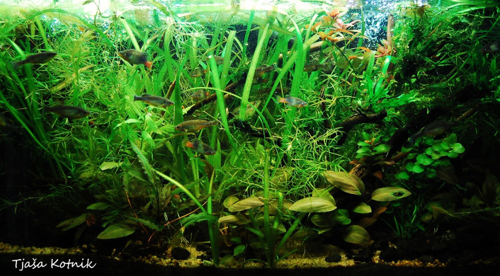 Akvarij v katerem gojimo Ilyodon-ne naj bo gosto zaraščen z rastlinami, ki sežejo vse do vrha akvarija.