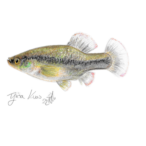 Ilustracije ribe Goodeid s tehniko suhe barvice. Možen nakup originalne slike z okvirjem ali brez, velikost slike je cirka 148 x 210 mm.