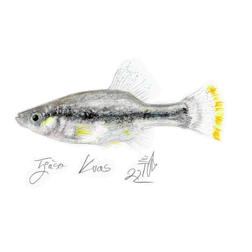 Ilustracije ribe Goodeid s tehniko suhe barvice. Možen nakup originalne slike z okvirjem ali brez, velikost slike je cirka 148 x 210 mm.