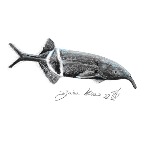 Ilustracije ribe Kongoški rilčar s tehniko suhe barvice. Možen nakup originalne slike z okvirjem ali brez, velikost slike je cirka 148 x 210 mm.