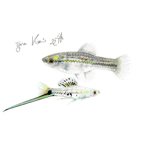 Ilustracije ribe Meček s tehniko suhe barvice. Možen nakup originalne slike z okvirjem ali brez, velikost slike je cirka 148 x 210 mm.