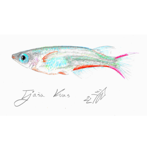 Ilustracije ribe Riževka s tehniko suhe barvice. Možen nakup originalne slike z okvirjem ali brez, velikost slike je cirka 148 x 210 mm.