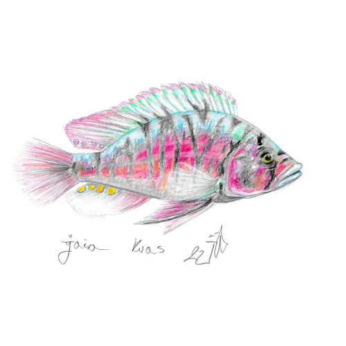 Ilustracije ribe Viktorijanski ostrižnik s tehniko suhe barvice. Možen nakup originalne slike z okvirjem ali brez, velikost slike je cirka 148 x 210 mm.
