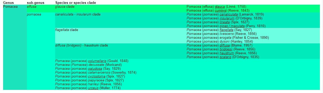 Pomacea (pomacea) haustrum (Reeve, 1856) in Pomacea (pomacea) gigas / maculata (Perry, 1810) pa zelena.