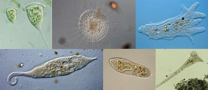 V to skupino spadajo enocelične alge, živali, glive in zelo majhne večcelične živali.