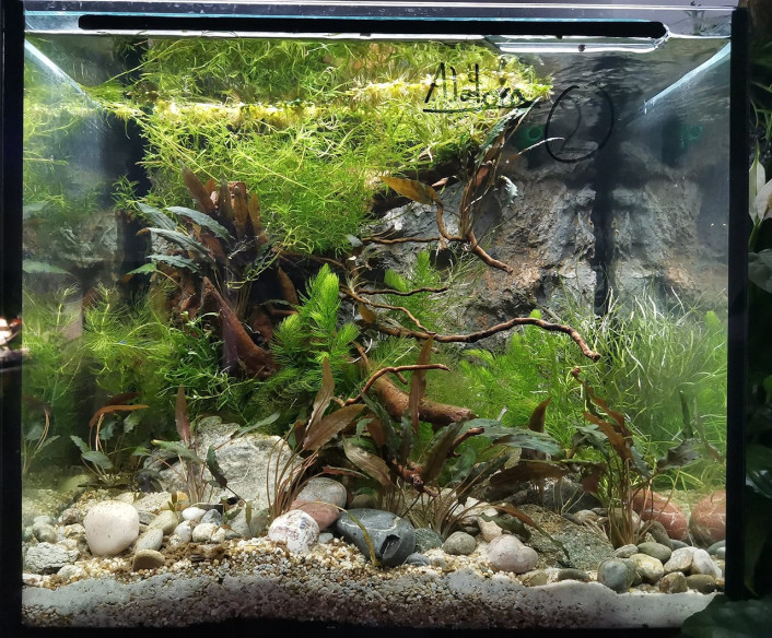 Po 60. dnevu. Akvarij je še vedno mlad in nestabilen, končno biološko ravnotežje pričakujemo po enem letu, zato se v tem obdobju pogosto srečujemo z različnimi pojavi alg. Vsaka vrsta alge se pojavi z razlogom, saj nekatere dajejo prednost nitratom, druge pa obožujejo fosfor. Včasih je za pojav alg kriva samo nepravilna kombinacija svetlobe in rastlin. Pomembno je, da pri izbruhu alg ne paničarimo in zadeve ne rešujemo agresivno z razdiranjem akvarija, pranjem peska in podobnimi metodami. Če se le da jih odstranimo ročno ali s pomočjo algojedcev, pri tem nam bodo pomagali različni polži in ribe. Pri nakupu algojedih živali imejmo v mislih njihovo odraslo velikost, saj je neetično, da ribo, ki potrebuje vsaj 300 litrski akvarij zapiramo v 50 litrsko posodo. Kljub pomoči, ki nam jo bodo ponudili algojedci, pa je še vedno najboljša metoda za zatiranje alg znanje. Če poznamo razlog za njihov pojav jih lahko odpravimo brez večjih invazivnih posegov v sistem.