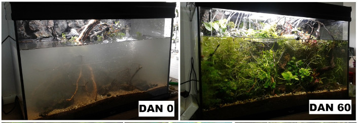 Postavili smo akvarij, vanj nalili vodo in zdaj čakamo, da se v njem vzpostavi biološko ravnovesje. V takem akvariju se dogajajo vidne in nevidne spremembe, ki so značilne za sisteme, ki so mlajši od enega leta. Sem sodijo pojavi različnih alg, sluzi ter povišane vrednosti dušikovih spojin. Mnogi začetniki se tega prestrašijo in se težav želijo rešiti na silo. V resnici pa ti pojavi niso nič strašnega, saj so del normalnega akvarijskega cikla.