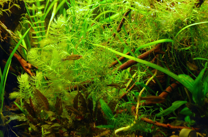 Akvarijske rastline in alge so med sabo konkurenti, kadar rastline dobro uspevajo, imajo alge minimalno možnost za agresivno rast. Na primer slaba svetloba v akvariju vpliva na počasnejšo rast rastlin, kar izkoristijo diatomeje, ki najraje uspevajo v temnejših s hranili bogatih vodah. Bradate alge ne marajo ogljikovega dioksida, med tem ko ga rastline obožujejo. Prav poseben primer pa so cianobakterije, te največkrat uspevajo pri močni osvetlitvi v vodi, ki je zelo revna s hranili. Prav zaradi kompleksnosti alg sem se odločila, da jim bom v kratkem namenila poseben članek. Do takrat pa imejte v mislih, da je akvarij zelo krhek ekosistem zato je včasih bolje, da težave, ki se pojavijo v njem rešujemo z neagresivnimi metodami, ki vzamejo nekoliko več časa, a so na daljši rok bolj učinkovite.