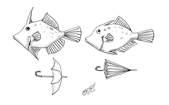 Preobraženi organi, so organi, ki so se tekom evolucije preoblikovali tako, da služijo točno določenemu namenu. Plavuti so še vedno plavuti, le da so se spremenile v močne in gibljive trne, ki jih riba lahko zavestno dvigne ali spusti. To daje živali videz dežnika in oblikuje edinstven obrambni mehanizem, ki je značilen za to družino.