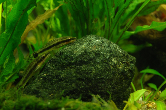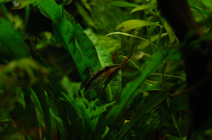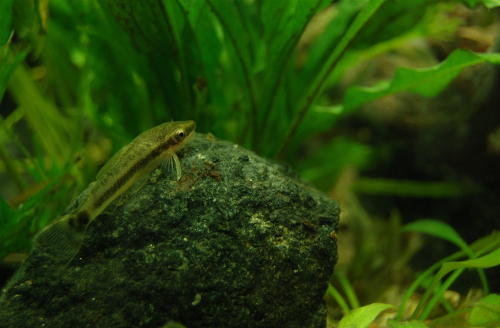 Združljiv je z majhnimi ribami, ki potrebujejo enako kakovost vode, je zelo občutljiva vrsta, zato ga naselimo le v dobro utečene akvarije in mu nudimo optimalne pogoje. Akvarij naj bo gosto zaraščen, obožuje rastline s širokimi listi ter plavajoče rastline z dolgimi koreninami. Za dekoracijo uporabimo ploščato neostro kamenje, korenine, veje in listje. Pesek naj bo neoster, droben in temen, da si ne poškoduje ust.