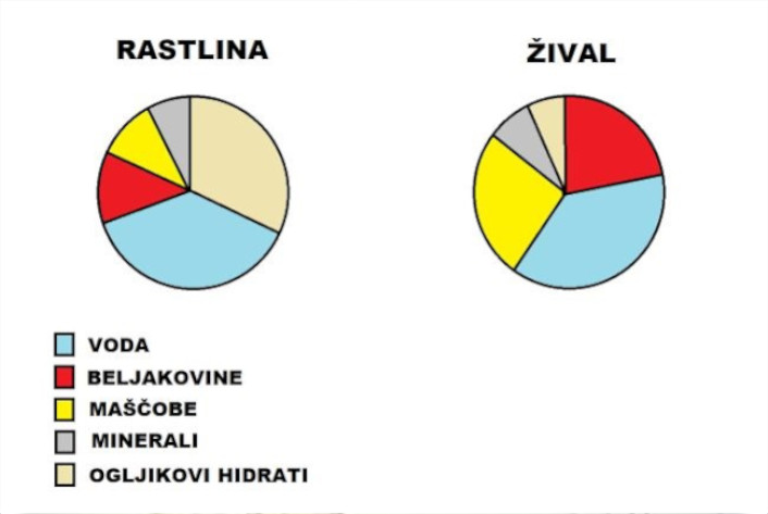 Rastlinska hrana je po vsebnosti hranilnih snovi malo drugačna od hrane živalskega izvora. Vsebuje veliko več ogljikovih hidratov, več vode, več surove vlaknine, manj maščob in manj beljakovin. Ogljikovi hidrati so sestavljeni predvsem iz oligosaharidov ter kompleksnih sladkorjev, ki jih povezujejo zelo močne kemijske vezi. Ti sladkorji rastlinam dajejo ogrodje, podobno kot kosti pri živalih. Takšne molekule je zelo težko razbiti in jih izkoriščati za hrano. Kljub temu obstaja zelo veliko živali ki rastline izkoriščajo kot primarni ali sekundarni vir hrane. Rastlinojedi so se na ta način hrane prilagodili in razvili drugačne anatomske značilnosti kot mesojedi. Poleg specifičnih ustnih aparatov ter zobovja so največja posebnost rastlinojedih živali njihova prebavila. Glavi razlog za te anatomske razlike je vsebnost celuloze v rastlinski hrani. Celuloza je kompleksen ogljikov hidrat, ki ga najdemo v celični steni rastlin, največjo vsebnost imajo listi in stebla. Njena lastnost je, da je živali ne morejo prebaviti. Ko govorimo o vsebnosti ogljikovih hidratov v rastlinski hrani največji delež predstavlja prav celuloza, pektin in oligosaharidi. Rastline vsebujejo zelo malo fruktoze, saharoze ter ostalih enostavnih sladkorjev, ki služijo kot neposredni vir energije. Največkrat jih vsebujejo plodovi. Ti ogljikovi hidrati lahko predstavljajo težavo v akvariju, saj jih izkoriščajo ogljikove bakterije, porast teh bakterij pa lahko povzroči motnost vode, ki je posledica cvetenja teh bakterij. Takšno cvetenje, lahko povzroči porušitev akvarijskega sistema, zato moramo biti pri hranjenju z sadjem in zelenjavo previdni. Poskrbimo da naš akvarij poganja dovolj zmogljiv biološko stabilen filter, ki prenese občasne obremenitve z organskimi spojinami, istočasno pa moramo poskrbeti, da ostanke hrane pravočasno pobiramo iz vode.