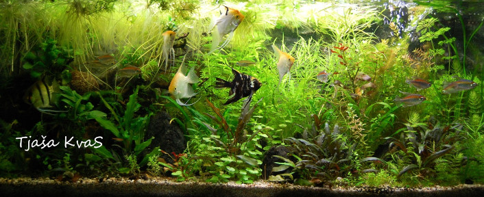 1. Gosto zaraščen akvarij z veliko rastlinami