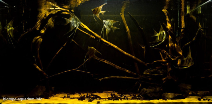 Skalarka je riba, ki ne mara močne svetlobe, zato so v rastlinskem akvariju nujno potrebne plavajoče rastline, ki zatemnijo akvarij.