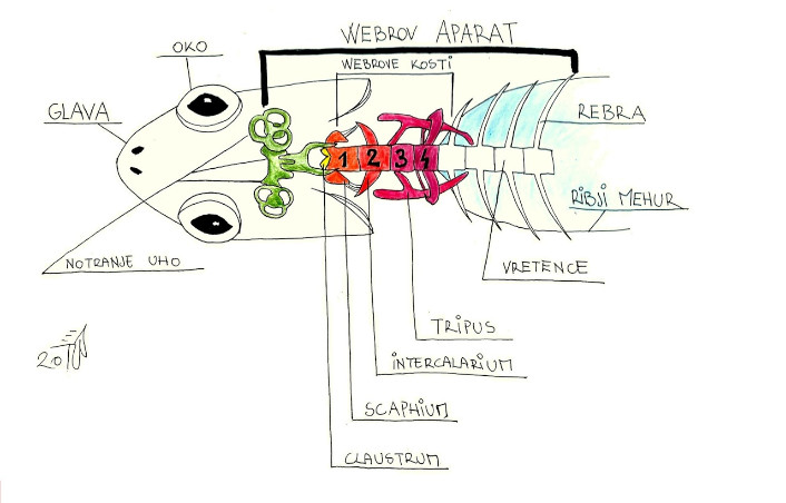 Organ je prvi opisal Ernst Heinrich Weber, pri tem je poimenoval štiri kosti claustrum, scaphium, intercalarium in tripus. Med proučevanjem je podal hipotezo, da to strukturo živali uporabljajo kot akustični organ. Danes vemo, da ga ribe uporabljajo za zaznavanje ter oddajanje zvoka. Struktura drobnih kosti je povezana z ribjim mehurjem ter notranjim ušesom, razvije se v zelo zgodnji embrionalni fazi iz prvih petih ali štirih vretenc.
