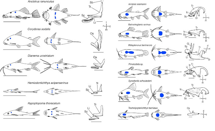 Zanimivo pa je to, da anatomska zgradba ter velikost webrovih aparatov zelo močno variira znotraj posameznih redov, družin ter vrst. Na splošno velja, da imajo vrste z večjimi ribjimi mehurji večje in bolj kompleksno grajene webrove aparate, zato posledično bolje slišijo višje frekvence. V raziskavi so pod drobnogled vzeli osem družin iz reda somov (Siluriformes). Ariidae, Auchenipteridae, Heptapteridae, Malapteruridae, Mochokidae, Pseudopimelodidae, Callichthyidae, in Loricariidae. Za Callichthyidae in Loricariidae je značilno, da imajo majhne parne zračne mehurje ter zelo preproste webrove aparate, med tem ko so ribji mehurji pri ostalih šestih družinah večji, webrovi aparati pa bolj kompleksni. Te ribe brez težav zaznajo tudi višje frekvence.